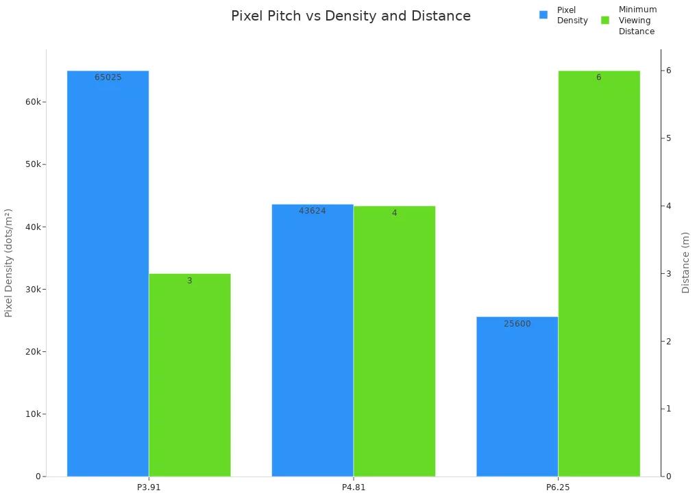İnsanlar 5 metre veya daha uzakta duruyorsa, 5 mm veya daha büyük bir piksel aralığı basit grafikler için uygundur. Canlı gösterilerde, bulanık görüntülerden kaçınmak için 8 mm'yi tercih edebilirsiniz. Chipshow birçok piksel aralığı seçeneği sunar, böylece en iyisini bulabilirsiniz.